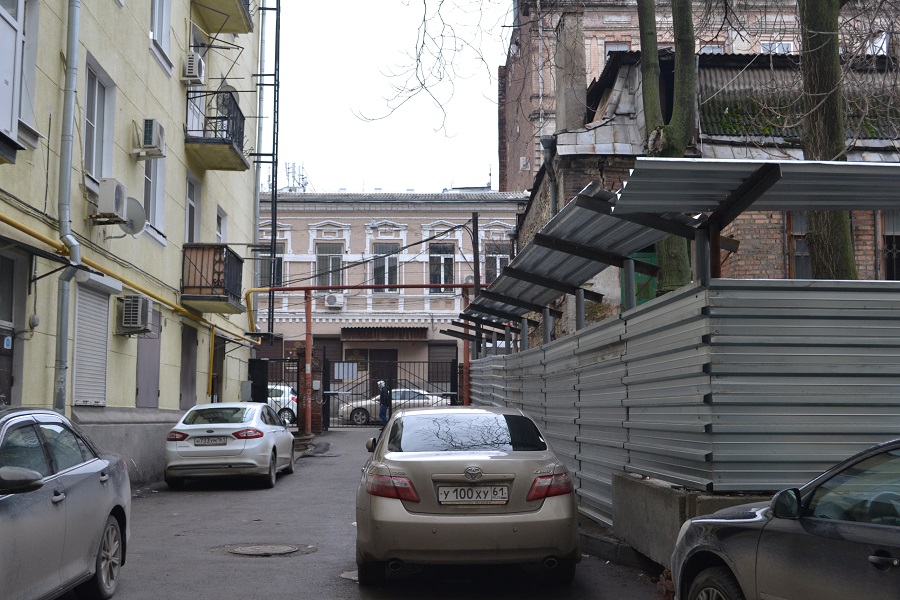 Около шести месяцев назад жители дома по улице Большой Садовой, 52–56 столкнулись с неожиданной проблемой. Достаточно большую территорию их внутреннего двора огородили забором. Оказалось, что со стороны улицы Шаумяна ряд собственников земельного участка планирует строительство восьмиэтажной гостиницы. При этом на участке, отведенном под строительство, находится историческое здание «Дом купцов Туварджиевых с бильярдной».