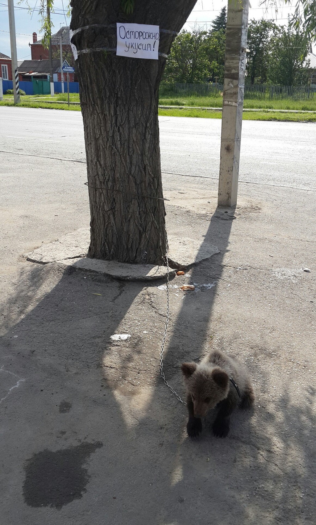 Пользователи соцсетей опубликовали пост с фотографиями медвежонка, которого в Ростове приковали цепью к дереву. Жители города уже обратились с заявками в Общество защиты животных.