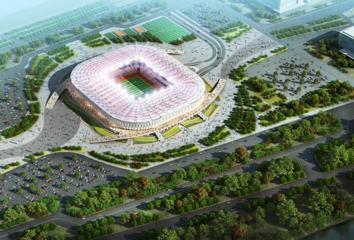 «Футбольное поле будет зеленым уже в этом году, проинформировал глава компании-генподрядчика. Специальные профессиональные компании приступили к его строительству. На поле нового стадиона будет коренная трава — никакого рулонного газон», — говорится в сообщении.