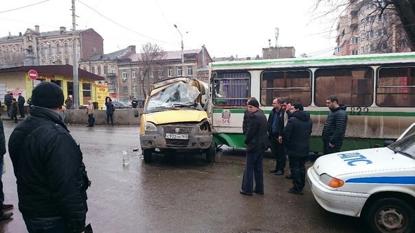 Сегодня в центре Ростова на улице Московской произошло столкновения рейсового автобуса и маршрутного такси.