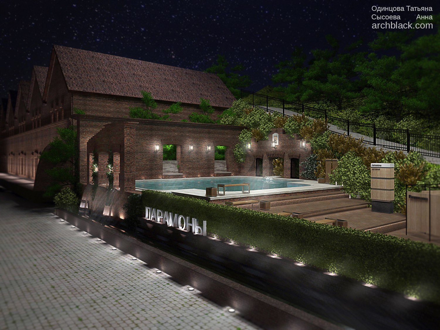 Дизайнеры предложили концепцию купели-памятника «Парамоны». «Нам хотелось максимально сохранить и передать дух места, ощущение „бассейна“ в полуразрушенном здании, созданного течением времени и природой. Было решено визуально „продлить“ существующий фасад на один модуль и воссоздать элементы оконных проемов с водопадом, таким образом новый проект вписывается в единый ансамбль», — рассказала Татьяна Одинцова.