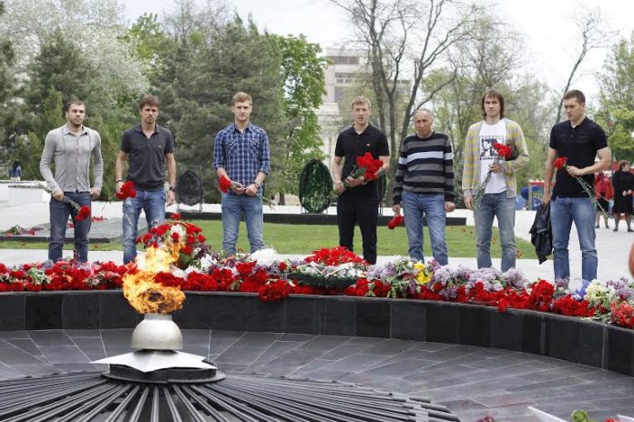 Игроки ФК «Ростов» сегодня приобщились к подготовке Дня Победы. Футболисты возложили цветы к Вечному огню в Ростове.