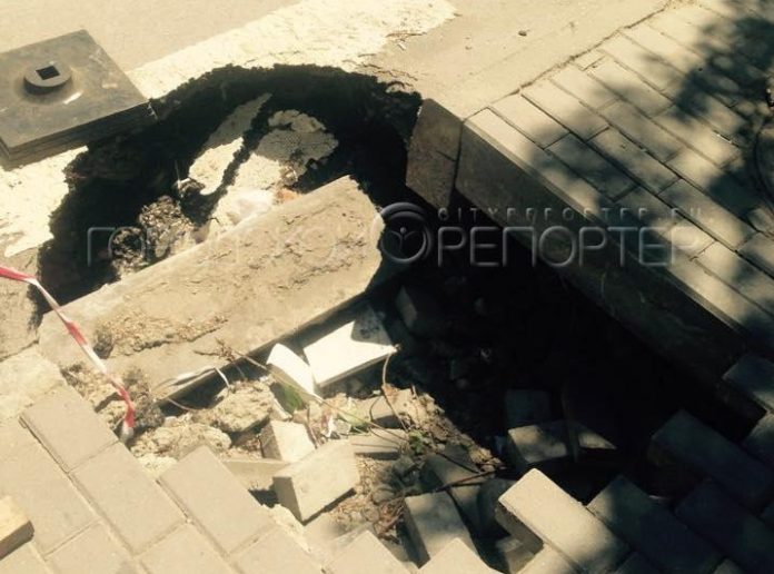 На пересечении переулка Газетного и улицы Красноармейской шестой день не могут ликвидировать яму, которая образовалась после прорыва ТЭЦ.