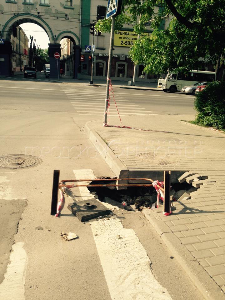 В пятницу, 22 мая в аварийной службе Кировского района у нас приняли заявку и пообещали ликвидировать яму, которая возникла после прорыва ТЭЦ в переулке Газетном. Сегодня утром оказалось, что заявка, оставленная в пятницу, нигде не зафиксирована, а территория, на которой находится яма, относится к Октябрьскому району города.