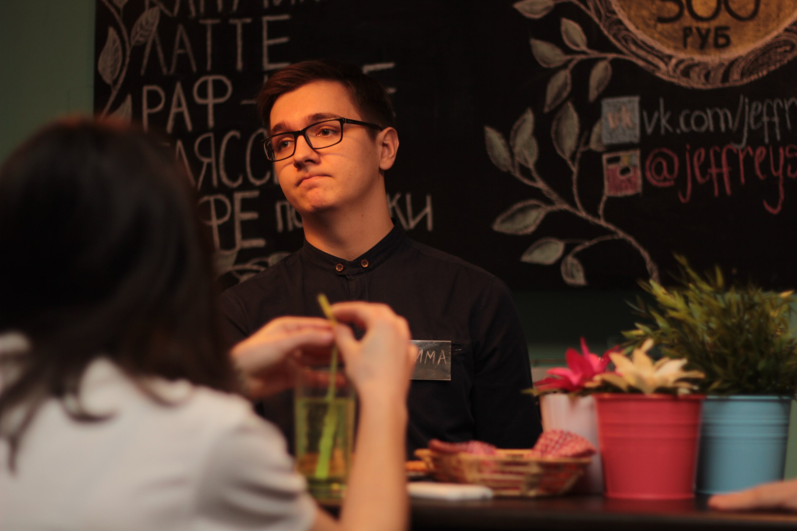 Наш основной конкурент — «Циферблат». Чем Jeffrey’s Coffee лучше? Ну, как минимум — настоящий кофе — делаем на это большой упор. У них есть латте, какао, капучино. У нас же — рафф-кофе, гляссе, кофе по-венски, с маршмеллоу, с топингами, с сиропами. В «Циферблате» нет банального простого развлечения. Нет акцента на настольные игры, нет настольного футбола и видеоигр. Там отдыхают по-особому — у нас в этом плане все проще, свободнее.