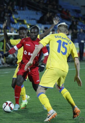 Игроки ФК «Ростов» Каку Гуелор Канга (слева) и ФК «Уфа» Николай Сафрониди в матче 22-го тура ФК «Ростов» — ФК «Уфа» // Фото: Анна Коновалова