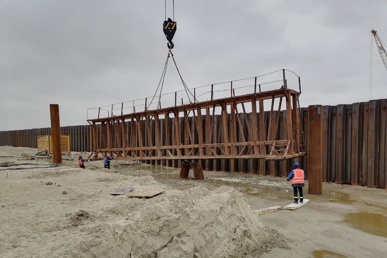 «Генеральный подрядчик, ГК „Стройтрансгаз“, занимается устройством причально-подходных каналов, которые должны обеспечивать безопасность при расхождении судов, а также во время стоянки в ожидании шлюзования. Специальные вертикальные сооружения выполняются в виде двойных стенок с анкерами», — говорится в сообщении.