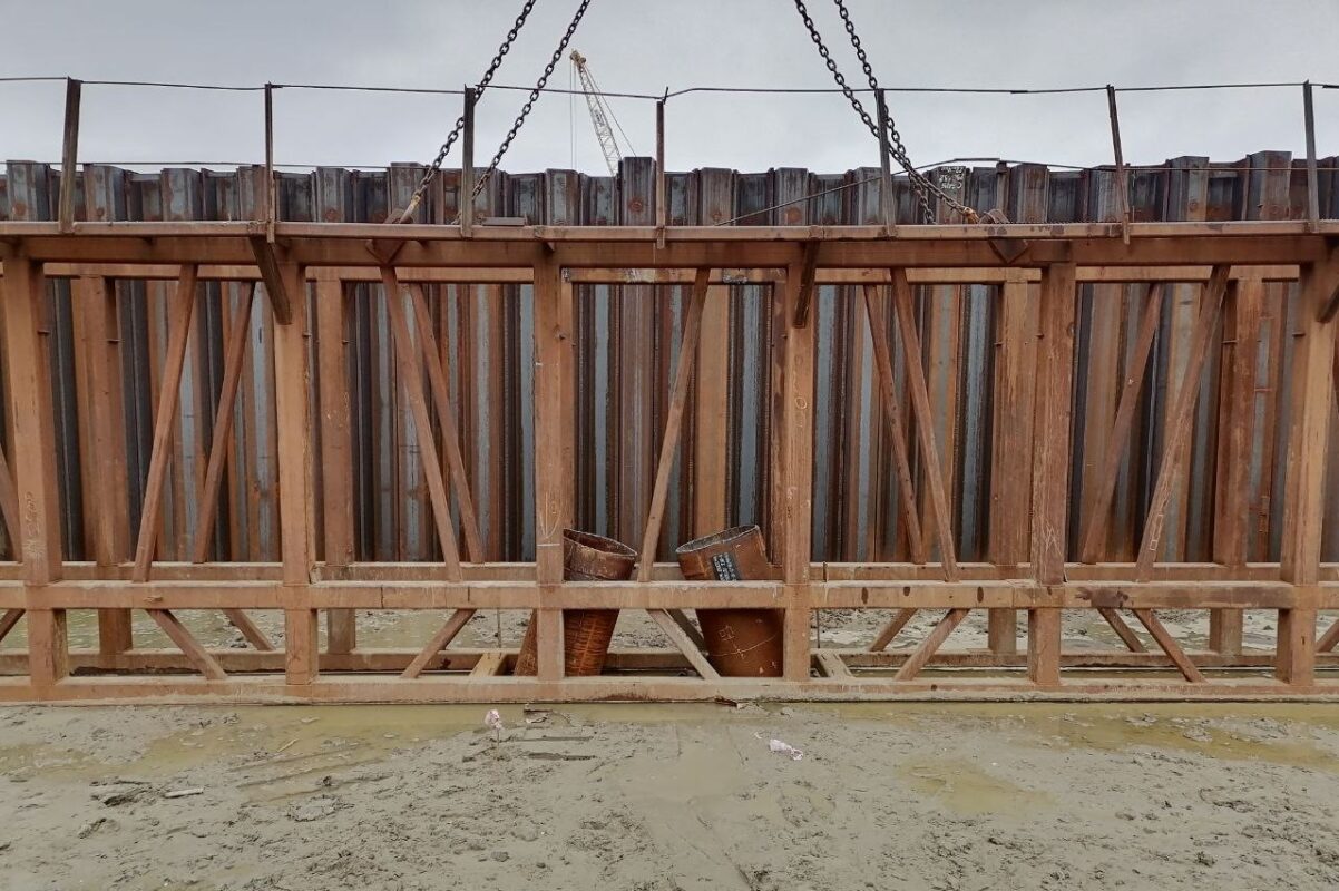 Параллельно подрядчик занимается устройством анкерных стен, которые служат своего рода якорем для стенок канала.