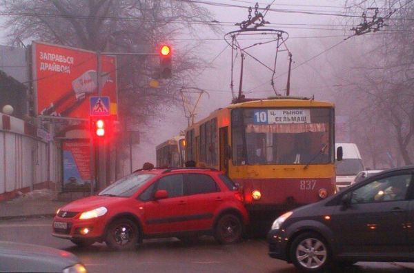 Около 9 утра на проспекте Шолохова в Ростове произошло ДТП. Трамвай врезался в легковой автомобиль.