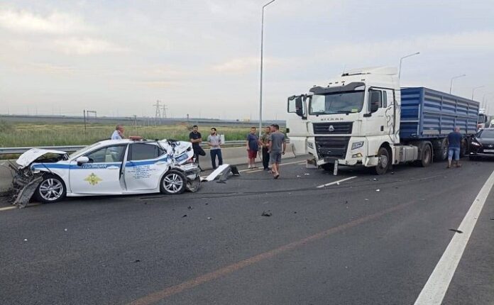 ДТП произошло вчера, 3 августа, около 9:30 на трассе М-4 «Дон» в Аксайском районе. По предварительным данным, патрульная машина Toyota Camry, разворачиваясь с включенными проблесковыми маячками и звуковым сигналом, врезалась в большегруз, под управлением 32-летнего водителя. Отмечается, что в салоне служебного автомобиля находилось два сотрудника ГИБДД, один из них — заместитель командира взвода ДПС ГИБДД ГУ МВД России по региону.