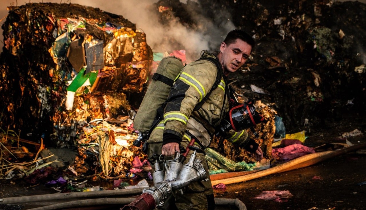 «Происходит горение макулатуры на площади 2000 кв.м. В 17:00 объявлен ранг пожара 2», — говорится в сообщении.