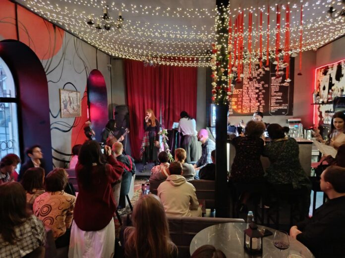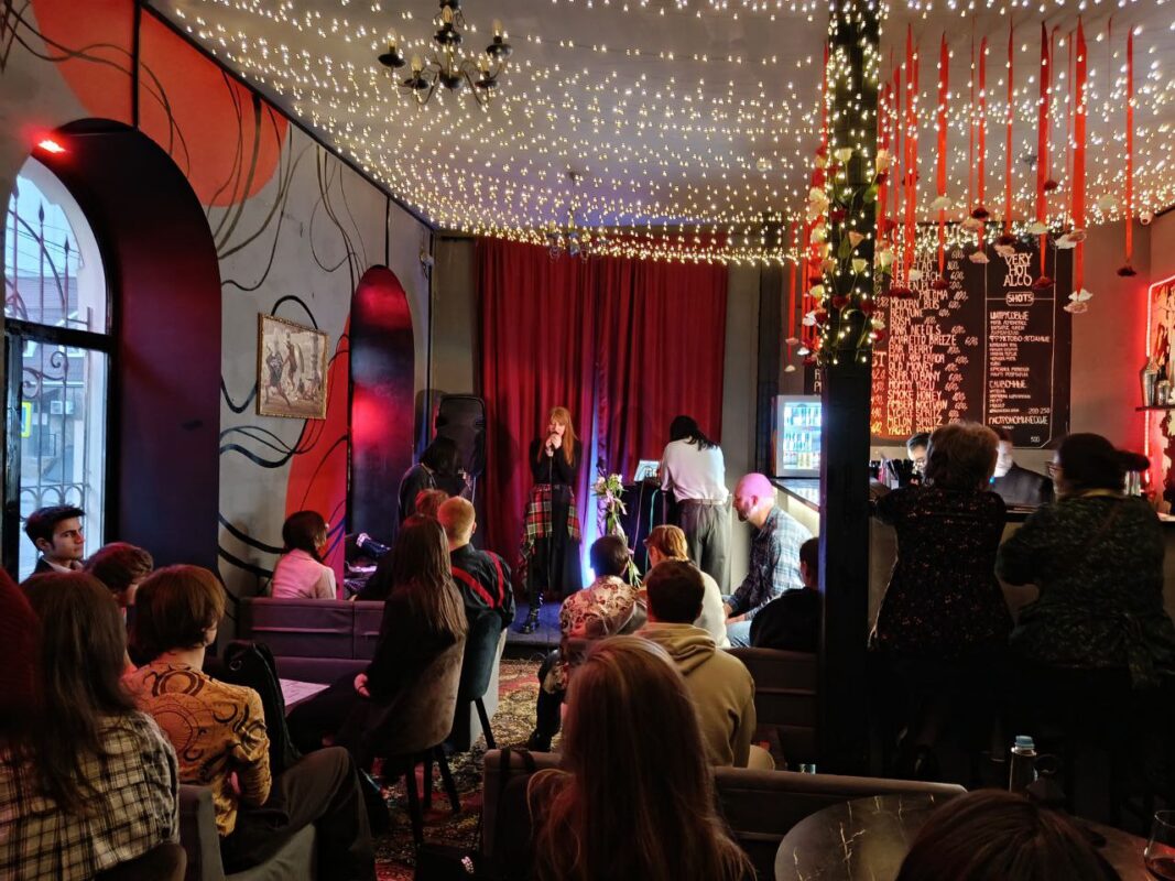 В преддверии 8 марта в уютном баре «Балаган» с душой 90-х случился настоящий аншлаг: квартирник и открытый микрофон «Диалоги: Весна» собрал полный зал молодых лиц и зрелых ценителей искусства. Организаторы Диана Грамма и Диана Югай создали атмосферу, где пост-панк соседствует со стихами о любви и пробуждающейся весне.