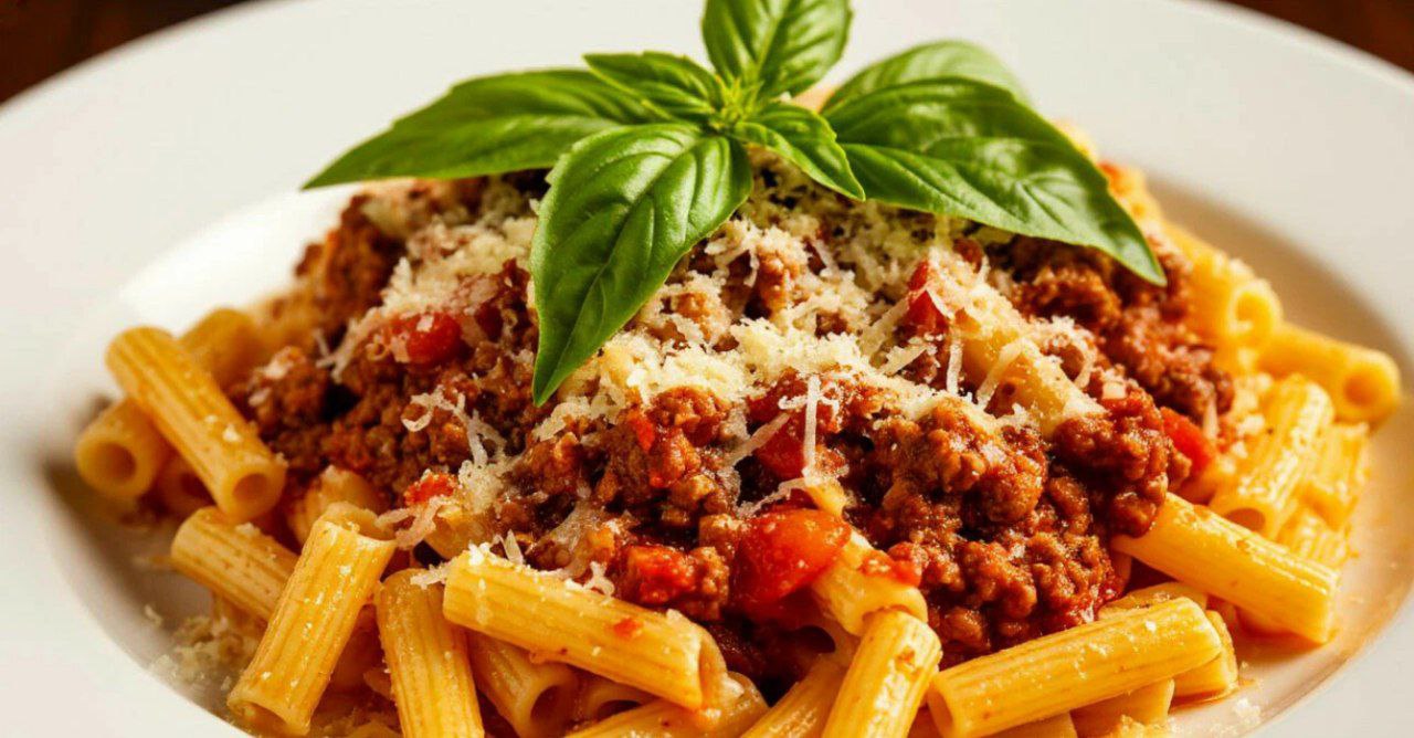 Идеальная паста Болоньезе. Секрет в долгом томлении. Мелко порубите луковицу, морковь и стебель сельдерея, обжарьте с панчеттой. Добавьте 400 г смеси говяжьего и свиного фарша, обжарьте. Влейте 100 мл белого вина, выпарите. Добавьте томатную пасту, затем 500 мл пюрированных томатов и 250 мл бульона. Тушите на медленном огне минимум 2 часа. За 10 минут до готовности влейте 100 мл молока. Подавайте с тегателле и пармезаном.