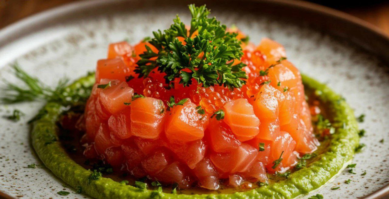 Тартар из семги. Идеальная холодная закуска, которая выглядит как ресторанное блюдо, но готовится за минуты. Мелким кубиком нарежьте 300 г слабосоленой семги и мякоть одного авокадо. Смешайте их с мелко рубленым красным луком (¼ головки) и укропом. Добавьте цедру и сок половины лимона, оливковое масло, соль и перец по вкусу. Аккуратно перемешайте и выложите в кольцо на тарелке. Секрет: готовьте тартар не более чем за 30 минут до подачи, чтобы авокадо не потемнел, а текстура осталась свежей. Украсьте икрой и подавайте с чипсами из лаваша.