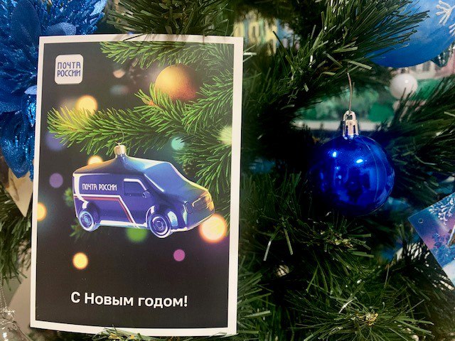 Открытки выпущены ограниченным тиражом 1 000 штук. На них изображена почтовая машина и надпись «С Новым годом!». Дизайн разработали специально для выставки в текущем году.