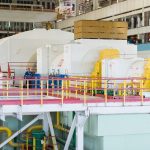 Проходя по длинному коридору к генератору одного из блоков, из окна мы заметили, что на территории ведутся строительные работы. «Сейчас идет подготовка к замене конденсатора на первом блоке. Эта первая замена этой детали вообще: прошлый конденсатор блока служил 14 лет, с момента запуска до сегодняшнего дня. Блок будет разгружен и выключен 15 сентября, но на подачу электроэнергии это не повлияет, деятельность других российских АЭС восполнит кратковременный технический перерыв в работе первого блока», — пояснил Вадим Койнов.