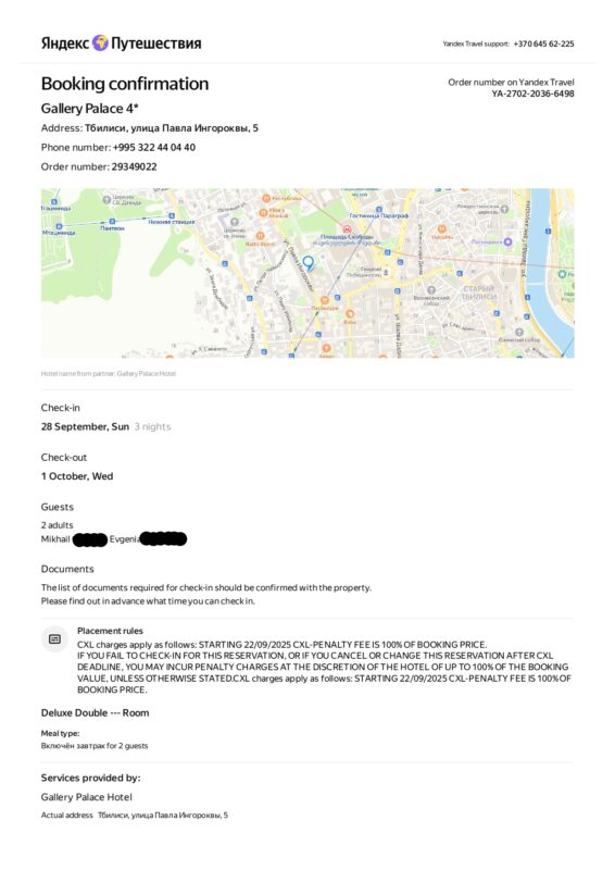 «В конце сентября мы, предвкушая отдых, забронировали и полностью оплатили отель в Тбилиси через приложение Яндекс Путешествий. Все было как обычно: пришло подтверждение, ваучер, четкие данные. Мы ехали в Грузию со спокойной душой, будучи уверены, что у нас есть оплаченное жилье», — рассказывает Евгения.