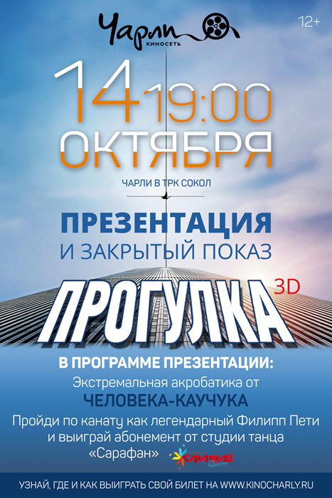 14 октября в 19:00 в ростовском кинотеатре «Чарли» в ТРК «Сокол» пройдет закрытый показ фильма «Прогулка 3D». Картину презентуют за день до общероссийской премьеры.