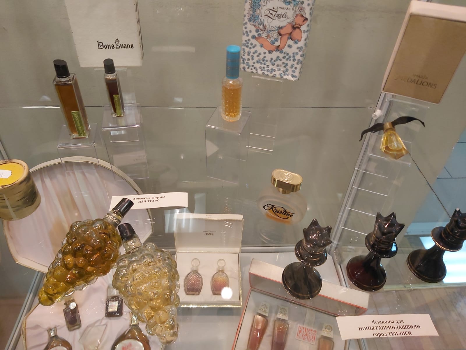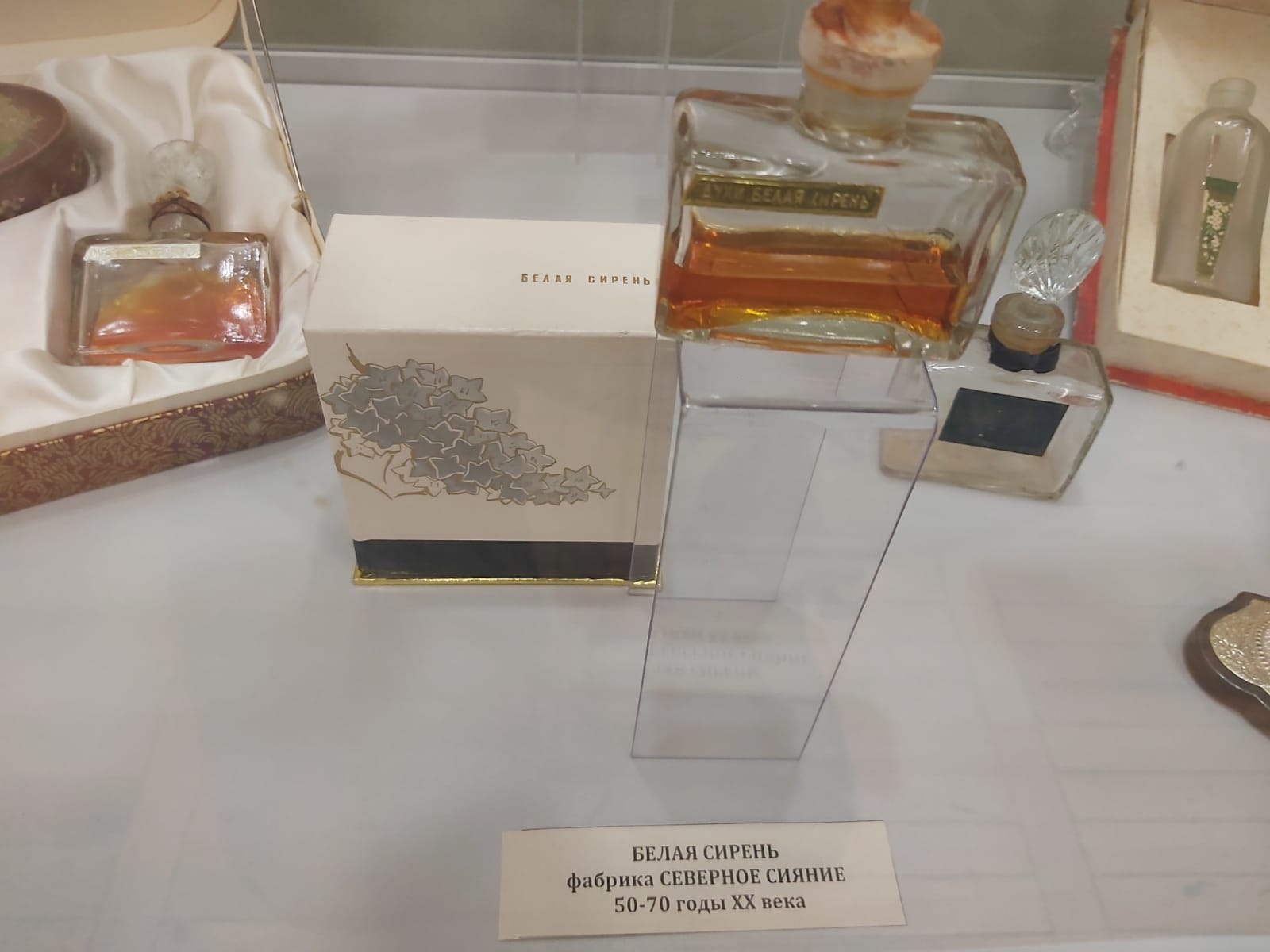 На выставке представлены также ароматы — духи, туалетные воды и одеколоны парфюмерных фабрик Риги — «Дзинтерс», Ленинграда — «Северное сияние», Николаева — «Алые паруса». Кроме того, есть здесь и созданные в честь России ароматы европейских парфюмерных производителей.