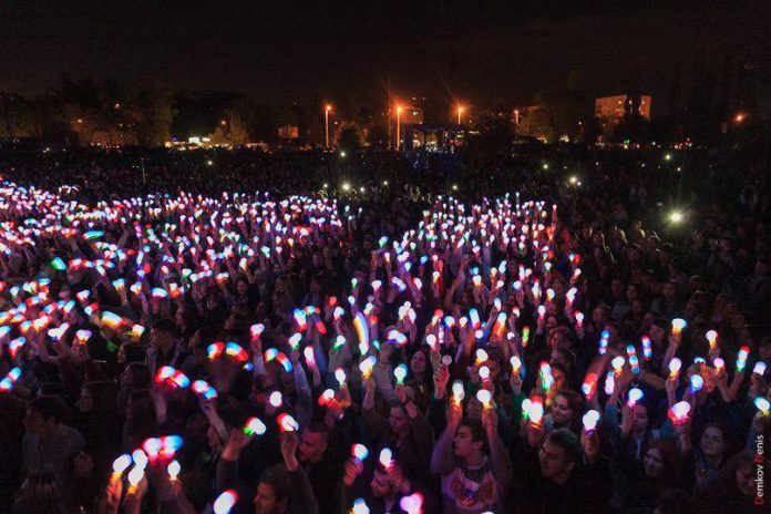 Студенты ЮФУ провели масштабный светодиодный флешмоб на праздновании 100-летия университета. Об этом сообщает пресс-служба вуза.
