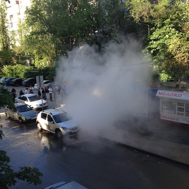 В центре Ростова, в переулке Газетном прорвало теплотрассу. Недалеко от улицы Красноармейской из земли бьет струя кипятка. Теплотрассу прорвало рядом с табачным киоском.
