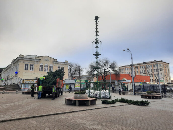 Как пишет издание со ссылкой на своего читателя, установка елки возле Центрального рынка на площади Соборной идет полным ходом. Кстати, на входе в рынок со стороны Буденновского праздничная ель уже установлена.