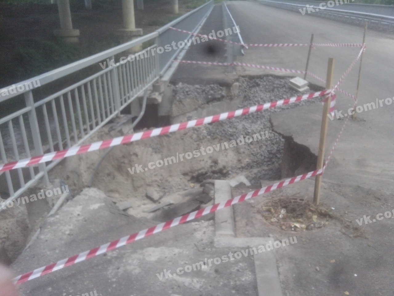 2 июля пользователи социальных сетей опубликовали фотографии моста, расположенного в створе улицы Песчаной в Ростове. На фотографиях видно, что на новом мосту провалился асфальт. Пользователь соцсети ВКонтакте Никита Задорожный, который является автором фотографий, написал о том, что мост открыли для пешеходов и автомобилистов всего полторы недели назад. Однако, по сообщению пресс-службы ростовской администрации, мост еще не сдан в эксплуатацию.