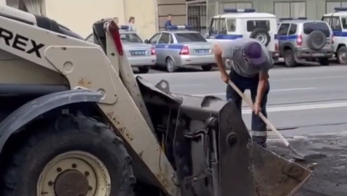 У здания главного штаба Южного военного округа (ЮВО) в Ростове начали восстанавливать асфальт, поврежденный во время движения по городу колонны военной техники ЧВК «Вагнер». Об этом сообщили в telegram-канале горадминистрации.