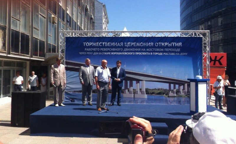 На церемонии с благодарственными и поздравительными словами выступили помощник президента Российской Федерации Игорь Левтин, врио губернатора Ростовской области Василий Голубев и директор территориальной фирмы «Мостоотряд-10» Александр Голошивец. После этого им предоставилась возможность открыть Ворошиловский мост нажатием символической кнопки. В воздух взлетели шары, а по новому оборудованному мосту поехали первые легковые автомобили.