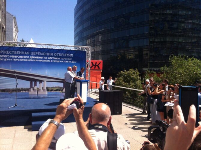 Сегодня открыли ревесивное движение по двум полосам Ворошиловского моста. «Городской репортер» побывал на церемонии запуска машин.