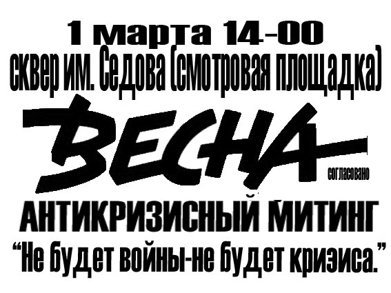 1 марта в 14 часов на смотровой площадке в сквере имени Седова начнется оппозиционный марш «Весна». Активисты приглашают ростовчан принять участие в акции.