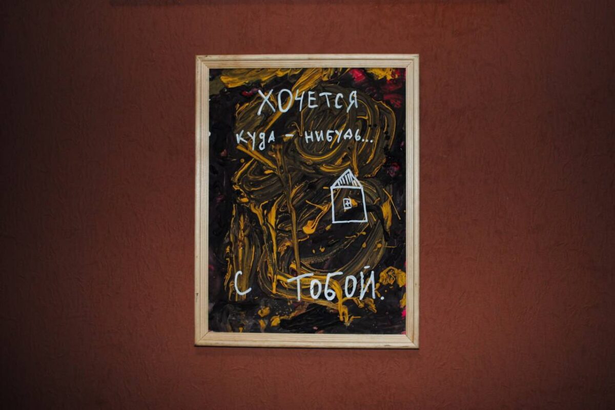 Одна из узнаваемых картин, которую мне доводилось видеть ранее в соцсетях, — «Лучшие годы твоей жизни уже прошли». Интересен выбор фона текста — это обои. Будто бы те самые, из детской спальни, на которых ты решил нарисовать домик, солнышко и счастливых маму с папой. Вот только надпись возвращает к жестокой реальности, лучшие дни детства остались там, позади. Хотя сам художник отметил, что нужно искать счастье в сегодняшнем дне, а не в прошлом или будущем.
