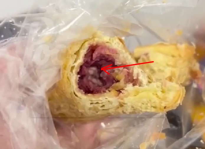 Откусив кусочек она обнаружила внутри шевелящихся червей в продовольственном магазине.