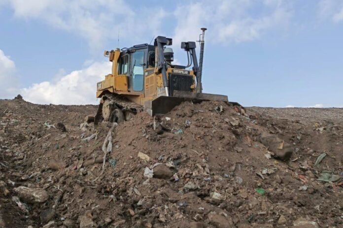 На полигоне завершили подготовительный этап и сейчас проходят работы по планировке и уплотнению свалочного грунта, устройству выравнивающего слоя из песка.