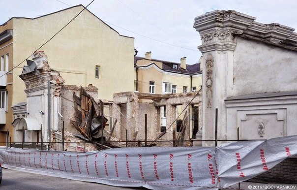 «При проведении работ по „регенерации объекта“ от здания сначала осталась одна „коробка“, а затем, в нарушении всяких строительных норм (да и просто вопреки здравому смыслу), внутри здания был выкопан котлован, по замыслу владельцев, вероятно, для будущего расширения „жилплощади“. Это действие оказалось фатальным для сохранности дома», — говорит Роман Бочарников.