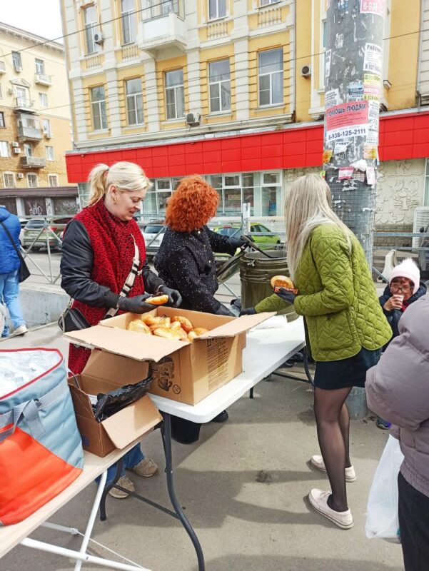 О том, что сейчас еду привезёт некая Лана, я уже поняла. Останавливается авто и оттуда благоухая выпархивают ростовские красотки. Формируется очередь, которой руководит помощница благодетельницы Наталья. Она тоже из нуждающихся, просто инициативная. Есть такие люди — их хлебом не корми, дай поруководить – талант.