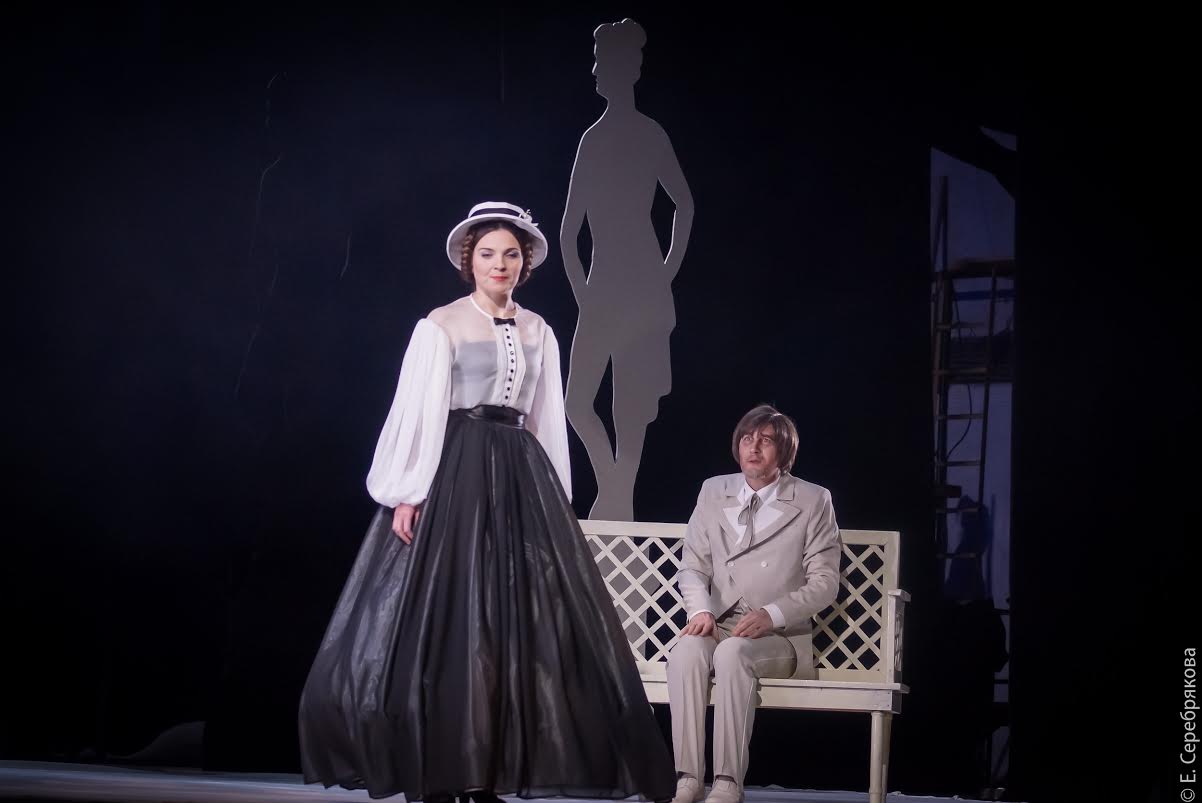 Игорь Лебедев, к которому театральная Фортуна более чем благосклонна и регулярно дарит своей щедрой рукой ведущие роли в таких спектаклях, что удавились бы от зависти многие федеральные звезды, кажется немного скованным. Как будто ему немного неуютно в предложенном режиссером гротескном образе, будто рвется из него что-то свое, старательно подавляемое. И не искусный грим, парик и даже скорбно опущенные плечи не могут это скрыть. Что уж говорить о голосе. Вот, казалось бы, он тихо отвечает фальцетом на реплики партнеров, но вдруг внезапно срывается на свой нормальный тембр, например, отвечая на оскорбления Рогожина. Застываешь, пытаясь осознать: это такой тонкий ход режиссера, или просто артист не выдержал премьерного напряжения. Хочется первое! Потом весь спектакль сидишь, прислушиваясь, а вдруг опять — вот так. Впрочем, во всем остальном князь Мышкин пока получается больше идиот, чем «почти святой». При таком раскладе совсем непонятно, зачем две прекрасные женщины — Аглая и Настасья Филипповна — борются за него?